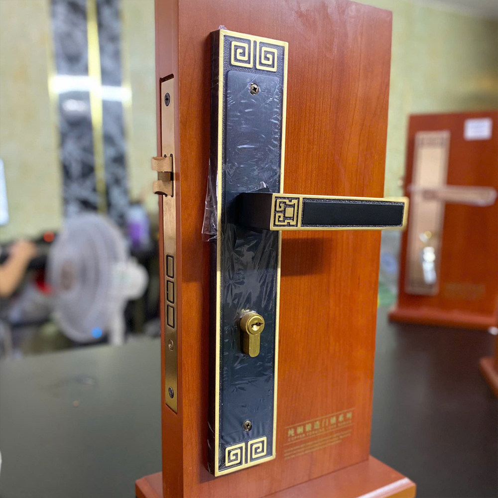| Chất liệu | Tay nắm bằng đồng thau, thân khóa inox có chốt lẫy bằng đồng thau |