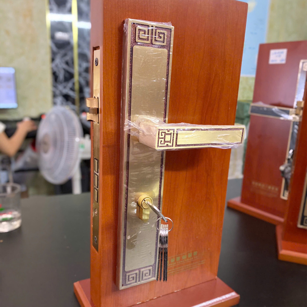 | Chất liệu | Tay nắm bằng đồng thau, thân khóa inox có chốt lẫy bằng đồng thau |