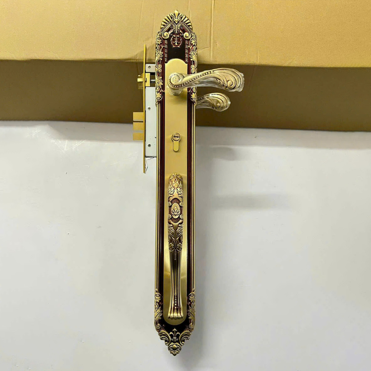 | Chất liệu | Tay nắm đồng thau, thân khóa inox có chốt lẫy bằng đồng thau |